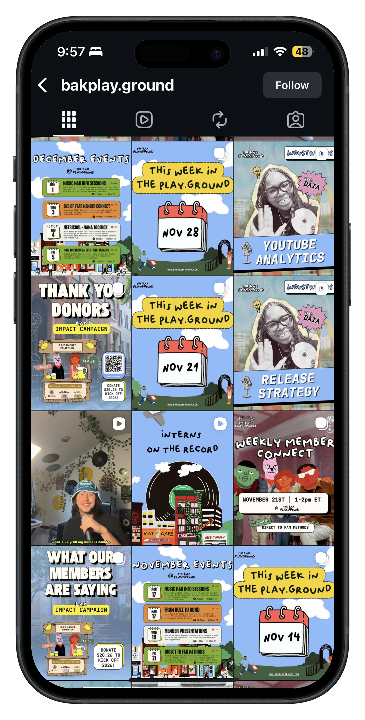 During my time at Big.Ass.Kids as a Graphic Design Intern, I learned how to design within an existing brand while helping grow their social media presence. I worked on creating consistent assets, developing a social media strategy, and executing content that supported growth and community engagement across the various B.A.K platforms, specifically for the B.A.K Play.Ground.
