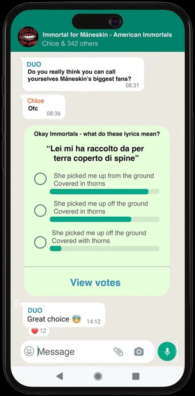 On WhatsApp, different themed Duos will infiltrate fan group chats, challenging them to prove that they truly belong in their fandoms.
